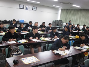 社会科で自動車工業の学習をしているので、実際にバスを作る工程を見たり、作る時の工夫を聞いて、興味深そうに聞いていました。今後学んだことを社会の授業でまとめていく予定です。