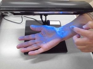 綺麗に洗ったつもりでも,手首やつめに汚れが残ります。