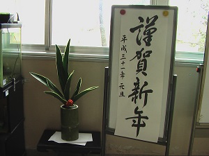 ②職員室前の色紙(かほく市余地の喜多先生より寄贈)