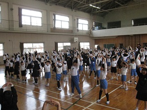 1年生も一緒に全校でげんきっず体操の練習を行いました。