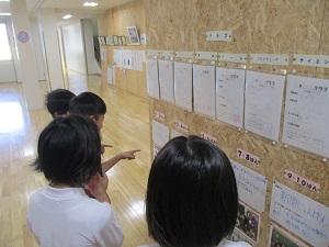 職員室前の掲示に、どこでどんなことをするのかがお知らせされているので、子供たちは自分で確かめて、集合場所に向かっていました。さすがですね。