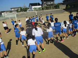 この日は、体育委員会との遊びの日。遊び券をゲットした児童は、体育委員と一緒に、大玉を使って思いっきり遊びを楽しんでいました。
