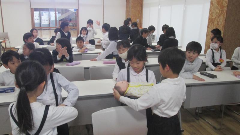 「かわいい」「意外と重いな」などと話しながら、大切に扱っていました。児童たちは、お父さんやお母さんから大切に育てられてきたことを感じ取っていたようです。
