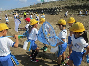 残念ながら浜で生き物は、見つかりませんでしたが、観察園や南運動場ではたくさんの生き物が見つかりました。