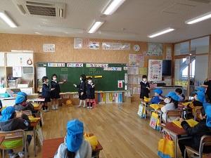 来年七塚小学校に入学する年長さんを招待し,1年生が勉強紹介や学校案内をしました。この日のために一生懸命練習してきた1年生は緊張した様子でしたが,これまでの練習の成果を発揮し生き生きと年長さんと接していました。