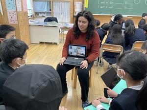 日本のおすすめの観光地や食べ物などをスライドにまとめ、これまでの学習で身に付けてきた表現を使って紹介していきました。