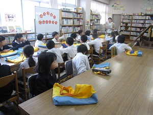 まだ、本を読めない1年生は、担任が読み聞かせをしていました。静かに、姿勢よく聞いていました。
