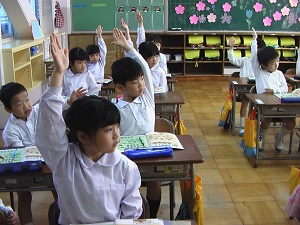 入学して2週間の1年生。すっかり七塚小学校の一員となり、勉強をがんばっています。