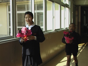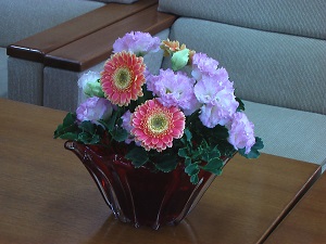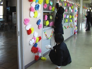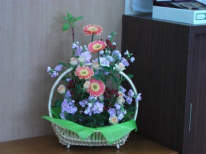 入学式のステージの演台に飾られていた花を、澤野学校コーディネーターがいろんな場所に生け替えてくれました。1年生の入学をお祝いしたこの花が、毎日1年生を見守ってくれています。