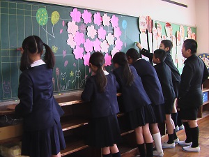 児童会目標は『思いやりの心をもち、笑顔がたえない七塚っ子』
