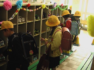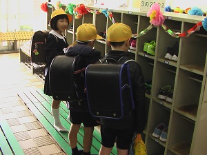 1つ進級した子ども達が、元気に登校してきました。新しい学年の自分の下駄箱を嬉しそうに探し、教室へと向かいました。