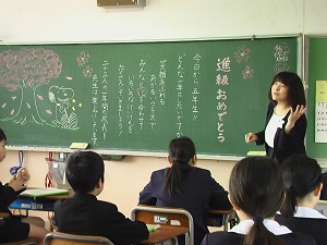 担任の先生からの熱いメッセージが、どの学級の黒板にも書かれていました。笑顔と拍手のある学級開きで、「楽しく学び合う子」へのスタートを切ることが出来ました。