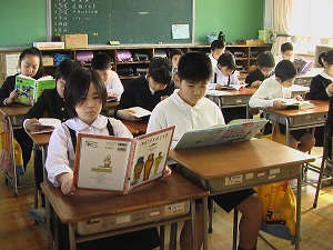 自分で選んだ本の世界にじっくりと浸ることで、心を落ち着かせ、1時間目の授業へと繋げます。どのクラスの子も、静かに朝読書に取り組んでいます。