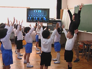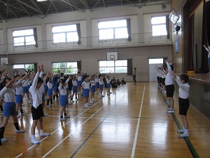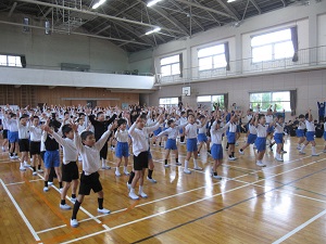 4月初めの水曜だったので,全校でげんきっず体操を行いました。