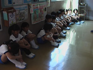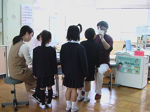 初めて内科検診を受ける1年生は、養護の松田先生の話をしっかり聞いていました。