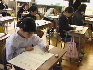 今日は、4年生(国語・算数)と6年生(理科・社会)が県の学力調査、5年生が市の学力調査(国語・算数)に挑みました。これまでに付けた力がどれだけあるのか、自分の弱点は何なのかを確かめる調査です。どの学年も、真剣な表情で頑張っていました。