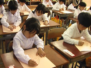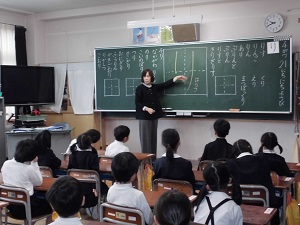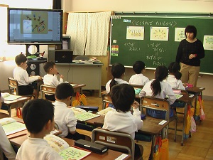 入学して2週間の1年生。すっかり七塚小学校の一員となり、勉強をがんばっています。