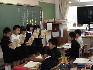 このあと、6年生は、5限目に木犀句会の5名の皆さんにご指導いただいて、俳句を詠む「木津桃句会」をしました。