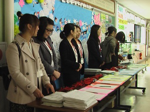 授業参観の間に、PTAの新旧役員の方々が力を合わせて、総会に向けての準備をしてくださいました。