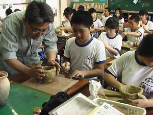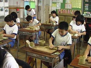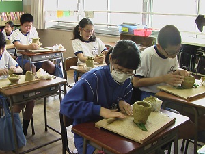市教育委員会のスポーツ文化課・折戸さんと亀塚さんを講師に、社会科の授業の一環として、6年生が土器づくりに挑戦しました。子ども達は、弥生時代に思いを馳せながら、思い思いの土器を作っていました。乾燥させた後、みんなで焼くのも楽しみにしています。
