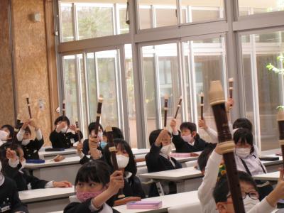 先生の素敵な音色のリコーダー奏に聴き惚れた3年生からたくさんの拍手が鳴り響きました。感染対策を確実にしてのこの会でしたが、生の演奏を聴いたり、いろいろな大きさのリコーダーを見てその場で音の高さを確認できたことは財産になったと思います。