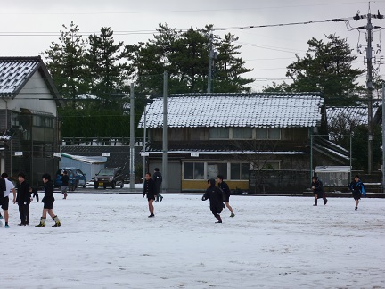 運動場も家の屋根も、あっという間に白くなりました。