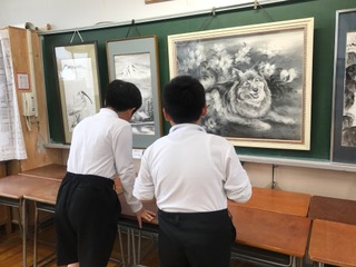 子ども達は、墨の濃淡だけで表現した作品に魅了されていました。
