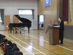 5年生が今月の歌を前に出て歌いました。素敵な歌声でした。