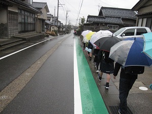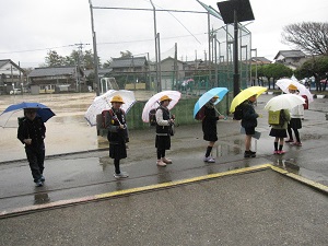 今日はあいにくの雨の1日だったため,いつもと違って1列で並んで下校しました。