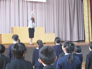 児童達は離任される6名の先生の話を真剣に聞き,メッセージに対して反応していました。お世話になった先生を気持ちよく送り出そうという気持ちが感じられました。