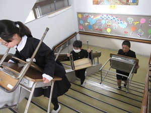 5年生が机といすの移動をしました。