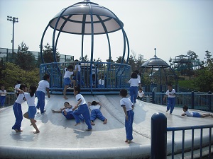 オリエンテーション、公園の遊具を使った遊びを楽しんでいました。