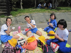 暑くて長い道のりでしたが、グループごとに声をかけ合って、あきらめずに登ることができました。