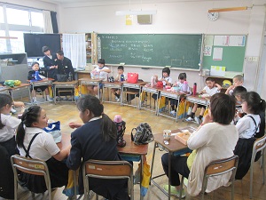 昨年度の6年生に水墨画の指導をしていただいた蘭墨会さんが、