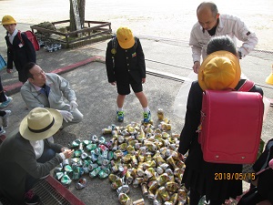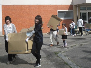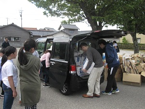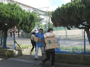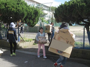 PTAの方や、児童が段ボール・アルミ缶・雑誌・新聞紙・衣類を運んでくれました。