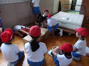 地震が起きたとき,どこを守るのか,地震が起きることに備えてどんなことをすればよいかなども学習しました。