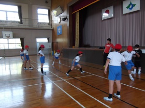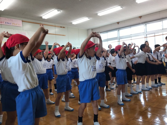 その前に、1年生が覚えたてのげんきっず体操を披露しました。