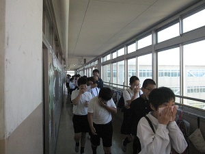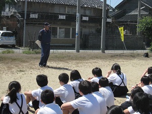 高松分署の方に来ていただき、避難訓練の様子を見てもらいました。