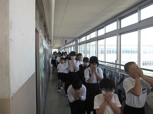 グリーンロードを整列して歩くこと、地域の人に元気なあいさつをすること、子ども110番の家の確認、危険な場所や、危ない遊びについて等、確認を行いました。