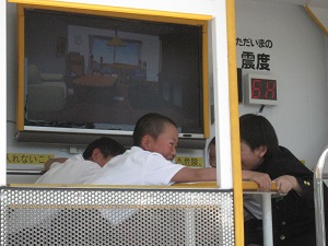 今回の体験ではけがをしないように,机が固定されて,物が落ちてくるということはありませんでした。それでも震度6強のゆれはなかなか凄いものでした。
