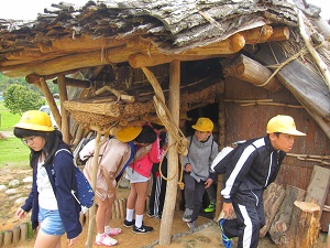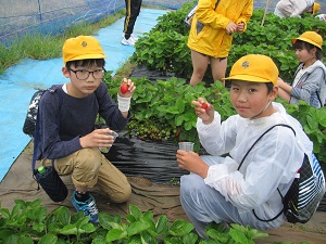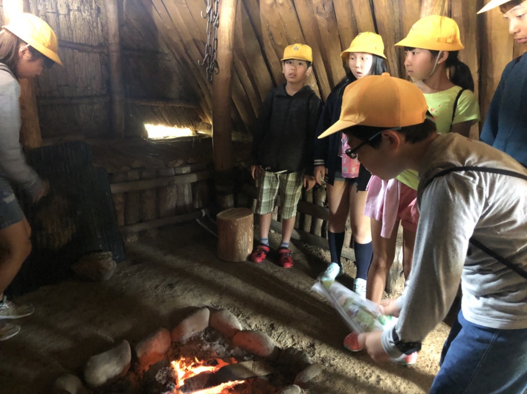 初日は、真脇縄文館で縄文時代の生活について学び、追跡ハイキング・イチゴ狩りを行いました。雨の降る中でしたが、楽しく活動できました。