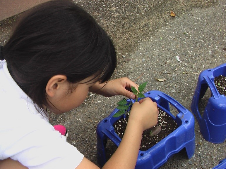 2年生は3.4限目の生活の授業で野菜の苗を植えました。