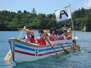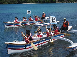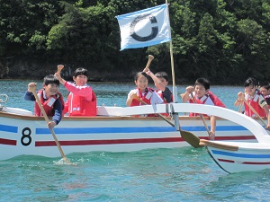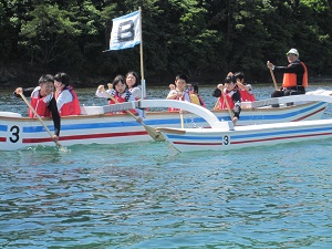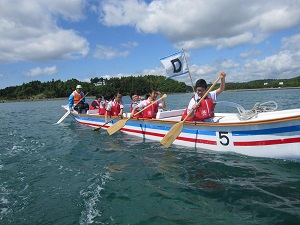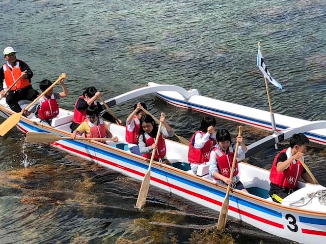 6年生が宿泊体験に行っています。海洋体験でカヌーをこぎました。