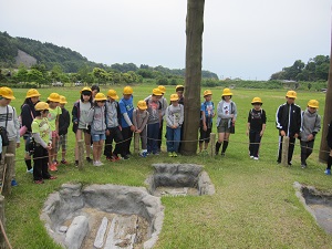 1.2限目 6年生は上山田貝塚と大海西山弥生の里に見学に行きました。