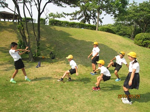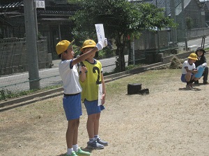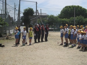 本日夕方、南運動場でなにやら騒がしい声が…気になって行ってみると…なんと、学童での防犯教室でした。先日の1年生の防犯教室に参加して下さった学童の先生方が、市の子育て支援課に依頼し実施したそうです。
