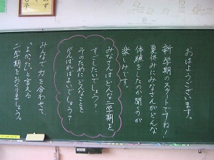 どのメッセージからも、子ども達の2学期の意欲を引き出すような担任の愛情と願いが伝わってきます。