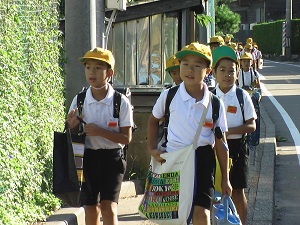 気持ちのよい晴天のもと、子ども達はたくさんの荷物を持って登校しました。
