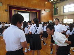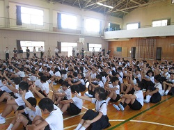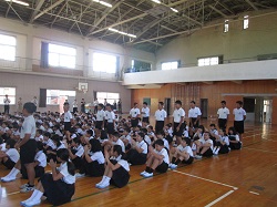 体育館で先生の話を聞く真剣な表情からも、その意気込みを感じます。