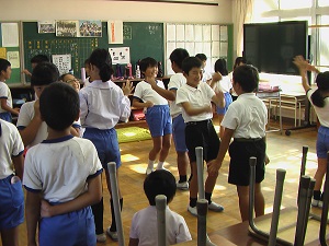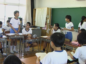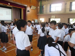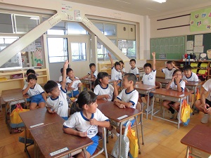 長かった夏休みも終わり、今日は久しぶりに学級の仲間の顔を見て子どもたちも嬉しそうでした。二学期始業式で、校長先生から夏休みに学校の代表としてがんばった人の紹介がありました。
