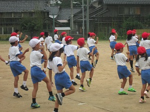 地域の方や保護者と一緒に元気に踊りました。リズムにのって踊ることができました。